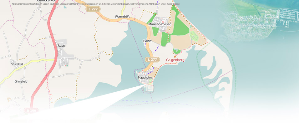 Von Kappeln auf der B 199 ca. 7 km Richtung Flensburg, dann bei Kieholm rechts ab Richtung Maasholm.